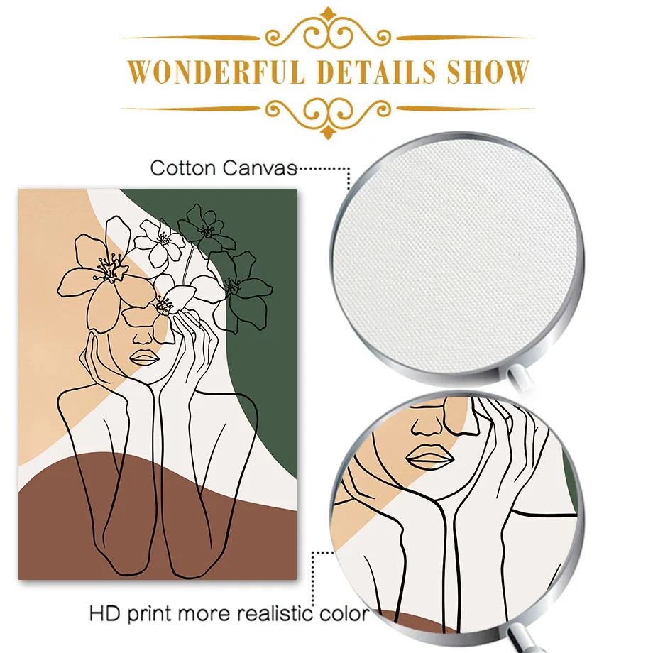 Boho Sun Line Girl Flower Rainbow Moon Vase Leaf Wall Art Canvas Painting Abstract Posters And Prints Bedroom Living Room Decor