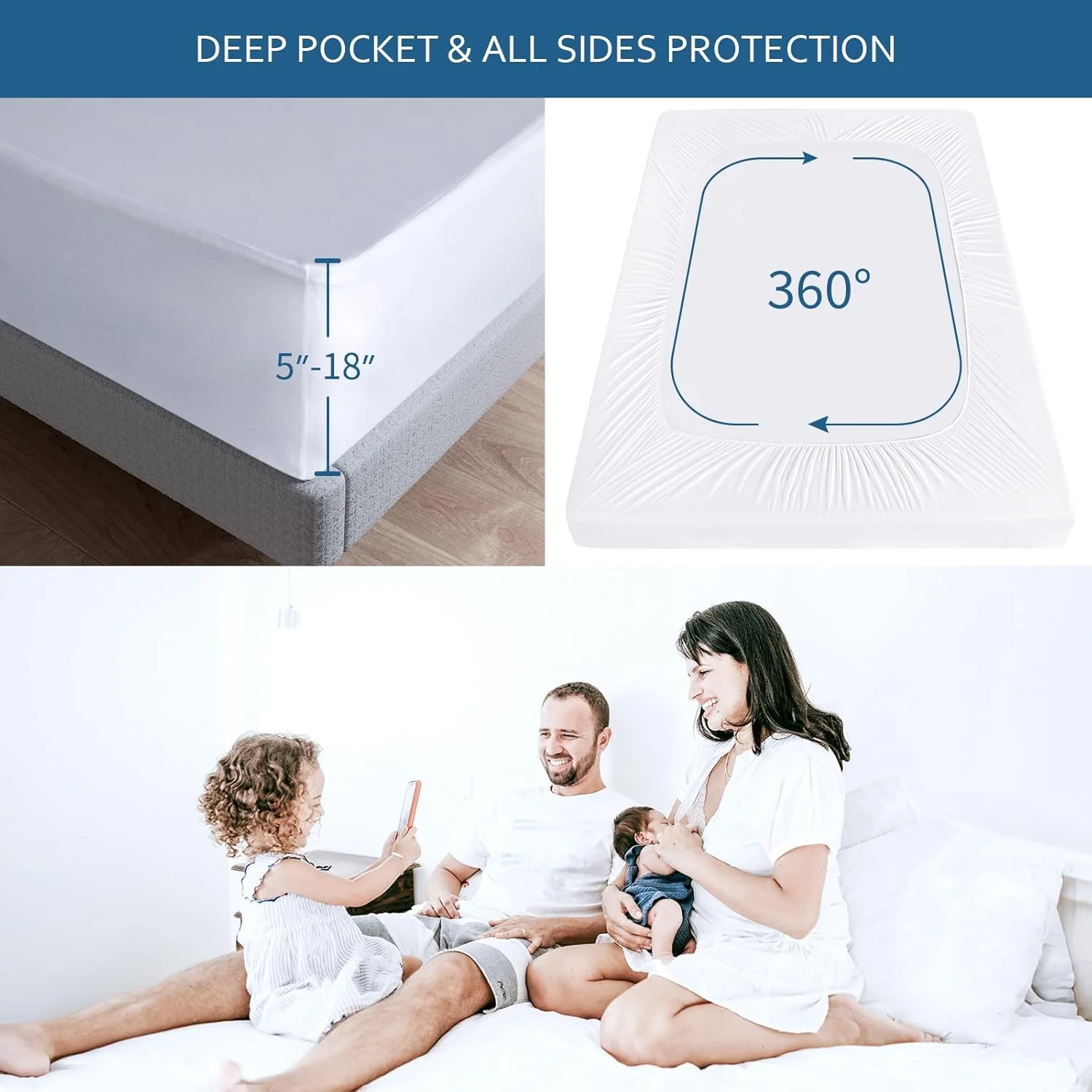 Waterproof Mattress Protector with 18″ Deep Pocket Bed Bug Proof and Waterproof Fitted Sheets Machine Washable White